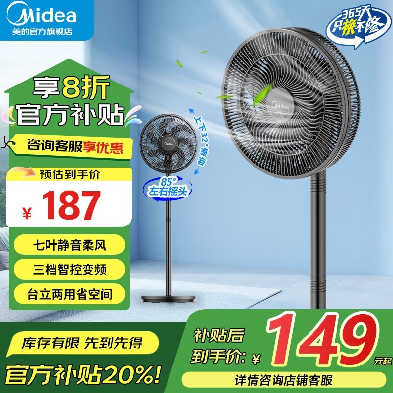 美的SAI30AD立式电风扇促销到手仅149元
