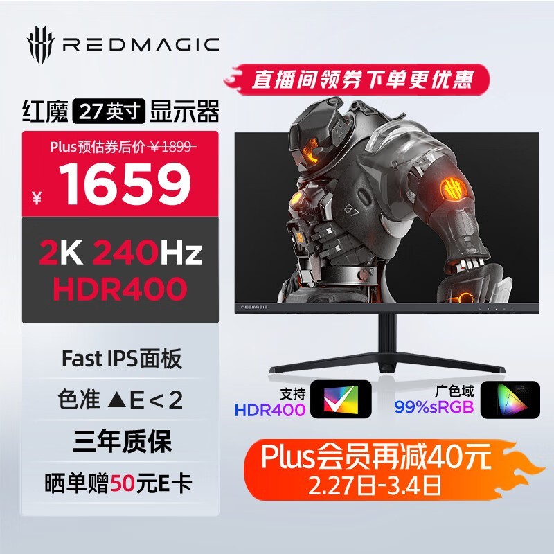 努比亚GM003J显示器27英寸2K240Hz仅1308元