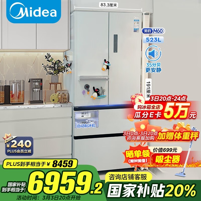 美的M60机皇550法式多门冰箱523升大容量保鲜节能静音