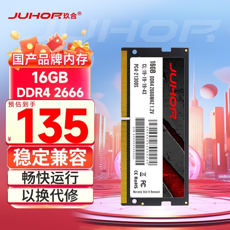 玖合16GBDDR42666笔记本内存条限时优惠仅135元