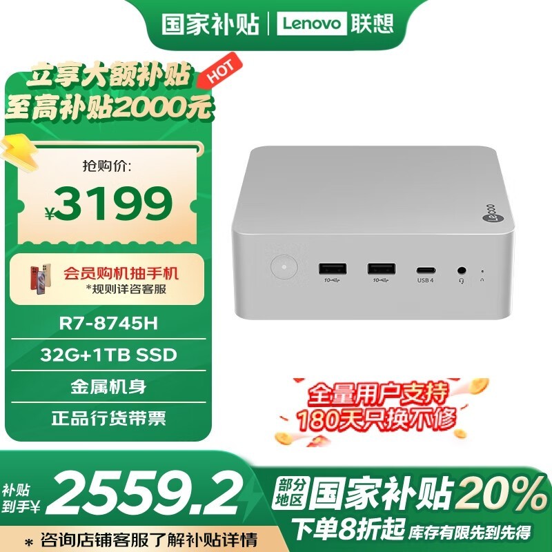联想Lenovo来酷MINI PRO主机R7-8745H/32G/1TB SSD京东特惠