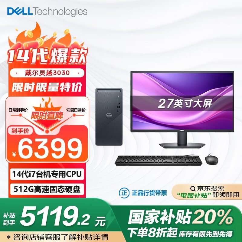 戴尔灵越Inspiron3030台式电脑主机14代i7-14700京东促销