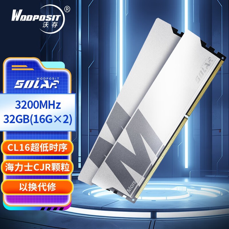 沃存32GB DDR4 3200内存条火星白款仅289元