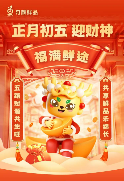 在内容层面,海报为私域用户提供了既丰富又富含文化内涵的视觉盛宴。用户浏览之际,不仅能深入了解奇麟鲜品“共建共生共享”的核心价值观,还能在潜移默化中感受到传统文化的独特魅力,实现了文化教育与品牌传播的双重效果。
