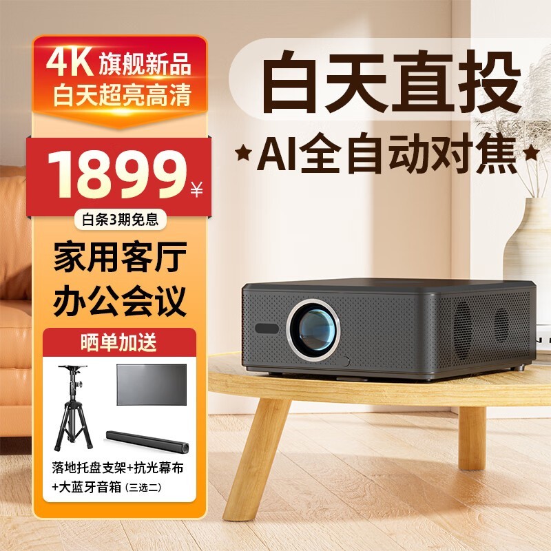 强普PS86:10000lm高亮玻璃镜头投影仪,4K画质、低噪音家庭影院神器