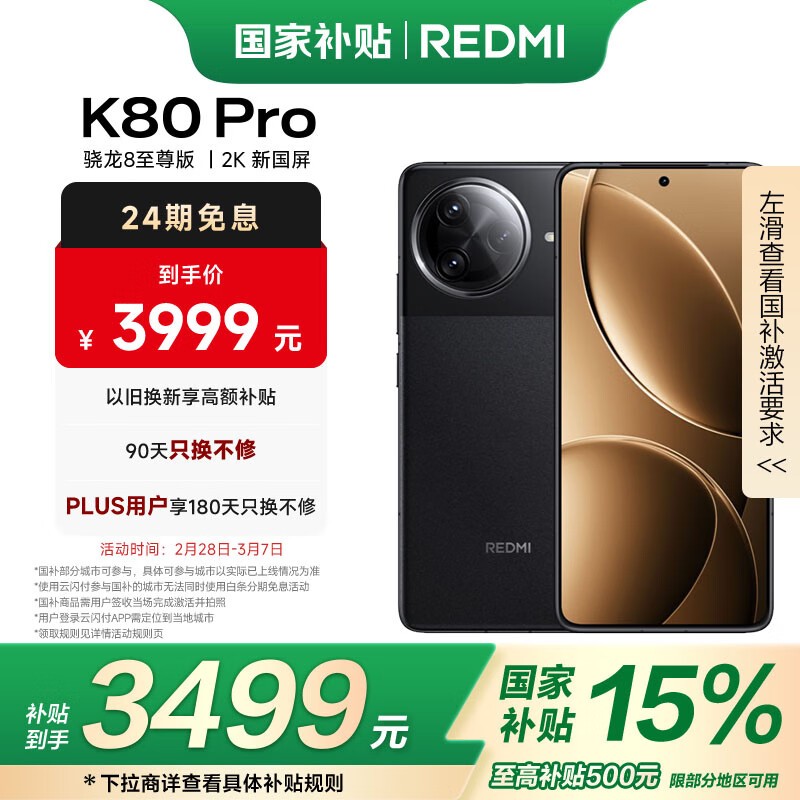 红米K80 Pro 5G手机12GB+512GB玄夜黑超值优惠