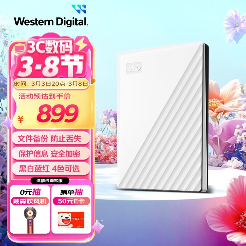 西部数据4TB移动硬盘促销,券后839元