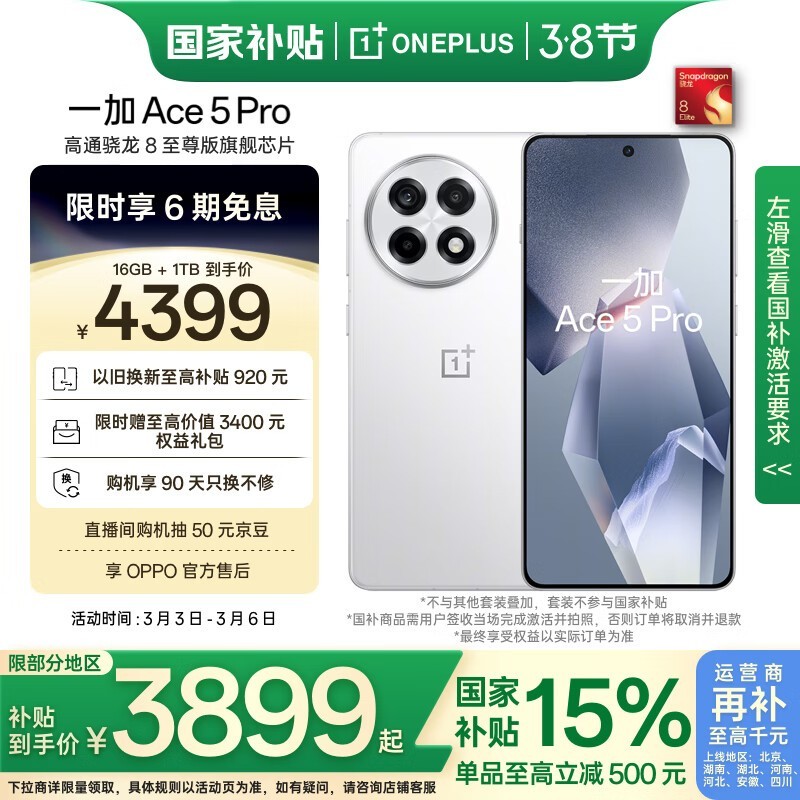 一加Ace 5 Pro 16GB+1TB版京东到手价3839元