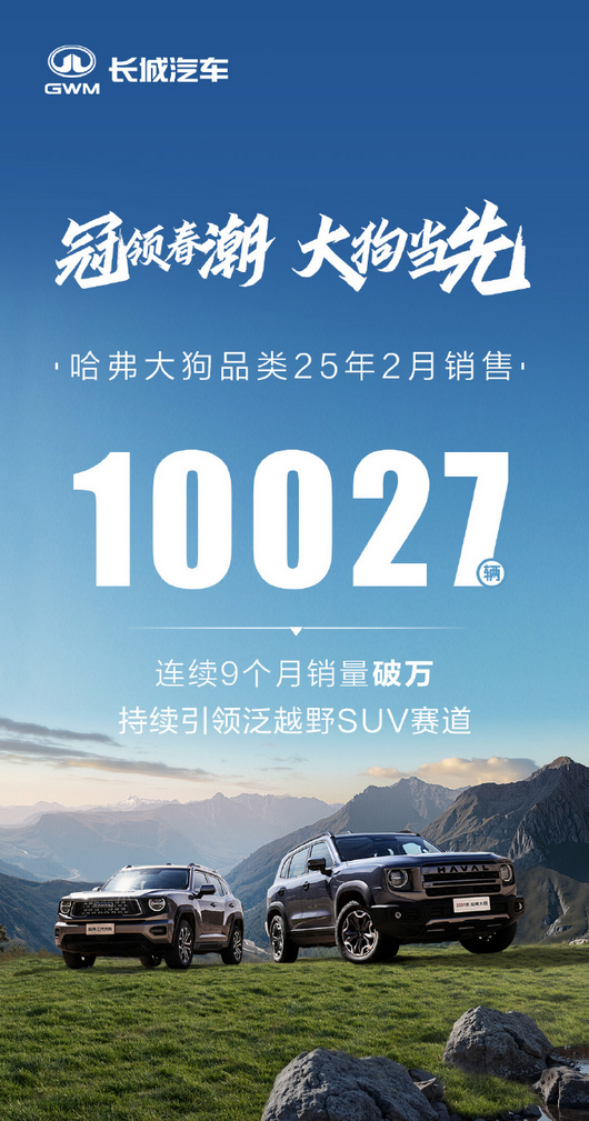 快科技3月4日消息,长城哈弗SUV官方近日宣布,哈弗大狗品类2月销量达到10027辆,累计销量已增至572599辆,已连续9个月销量破万!
