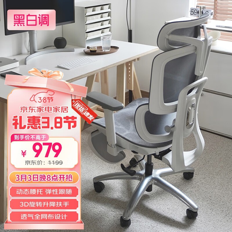 黑白调E2 Air云白色电脑椅到手价839元