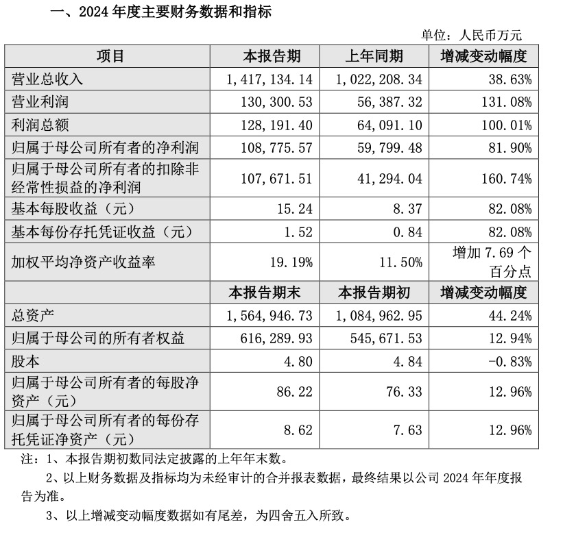 【亿邦原创】日前,九号公司发布了2024年度业绩快报。公告数据显示,九号公司2024年度主要财务数据均实现大幅增长。2024年,九号公司预计实现营业总收入141.71亿元,较上年同期增长38.63%;归属于母公司所有者的净利润10.88万元,同比增长81.90%。截至2024年末,公司总资产增长44.24%,达到156.49亿元;归属于母公司的所有者权益增长12.94%,达到61.63亿元。