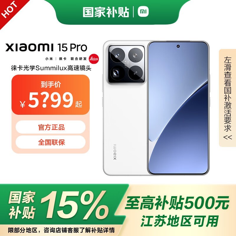 小米15 Pro旗舰5G手机京东热促白色16GB+512GB版到手4799元