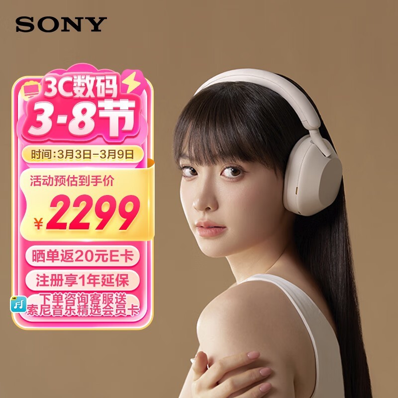 索尼WH-1000XM5蓝牙耳机米色款火热促销中