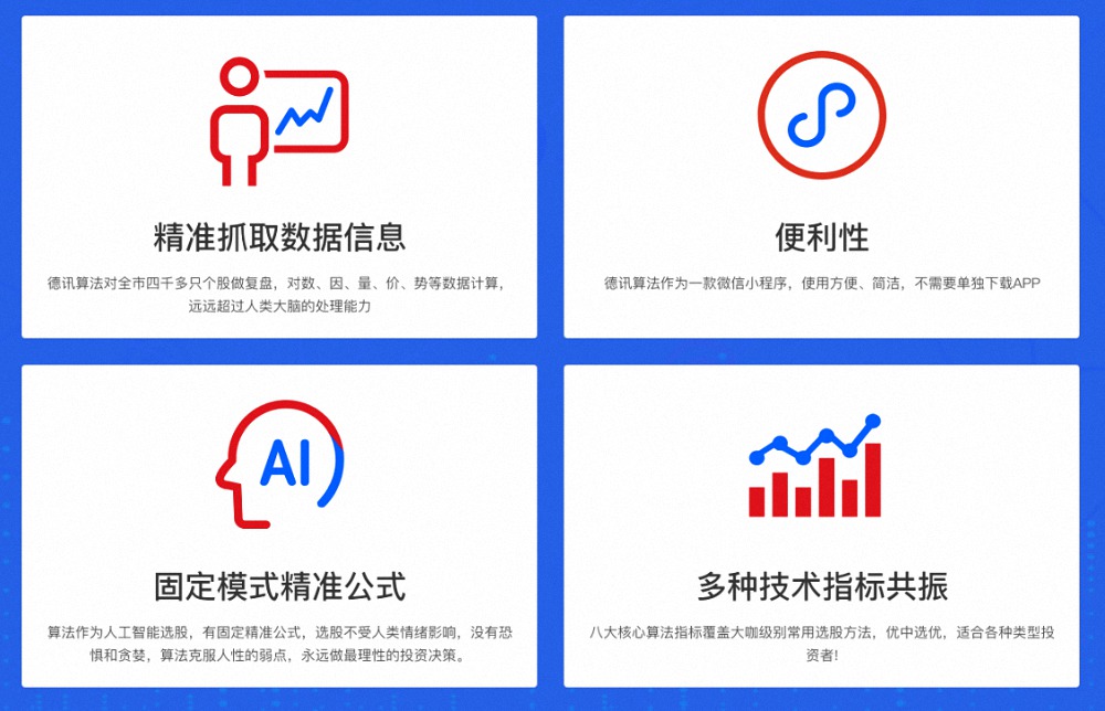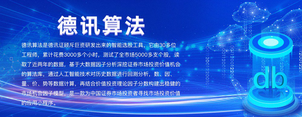 德讯证顾近期推出了一款名为“德讯算法”的智能选股工具,这款工具由30多位工程师历时3000多个小时研发完成,旨在通过大数据分析和人工智能技术,为投资者提供更多市场信息参考,帮助其更好地理解市场动态。