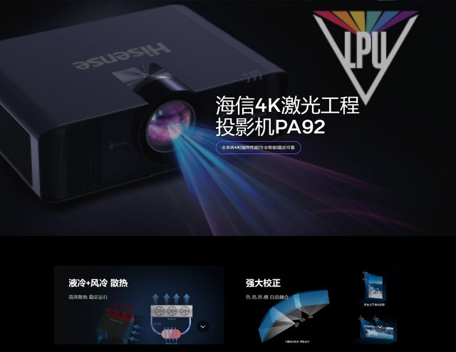 (中关村在线 四川行情)海信PA92新款工程投影机,采用DLP激光投影技术,0.65英寸DMD芯片,标准分辨率为3840x2160(4K),9200ANSI流明高亮度,3000000:1超高对比度,60Hz刷新率,清晰明亮久看不累,光源寿命更是长达25000小时。电动变焦,自动聚焦,投射比为1.4-2.5:1,投影尺寸60-500英寸,支持手动几何校正、拍照校正、多点校正、弧形校正、可选内置融合。PA92搭载多种无线投屏方式,手机、电脑、iPad皆可实现轻松投屏,且快速响应、稳定投放,有效管控,安全无扰。