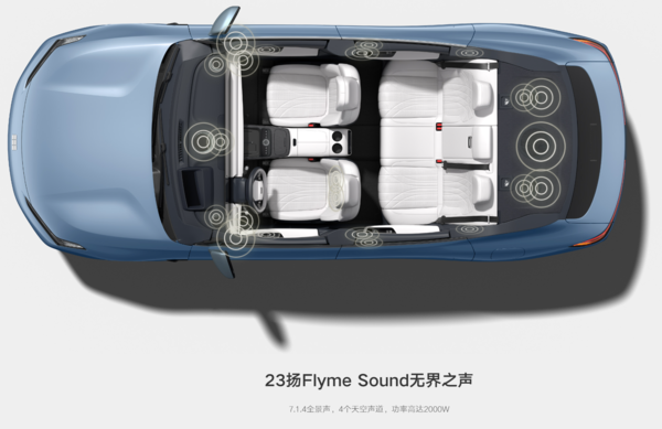 中高配探索/远航版:增加了前排座椅加热/通风/按摩、后排VIP座椅(加热/通风/按摩)、25.6英寸AR-HUD、23扬声器Flyme Sound音响、氛围灯、香氛系统、50W无线充、电尾门等豪华功能。