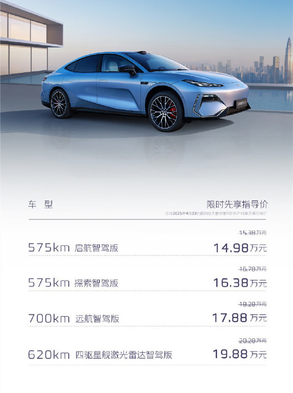 4. 620km四驱星舰激光雷达智驾版(限时价19.88万元)。