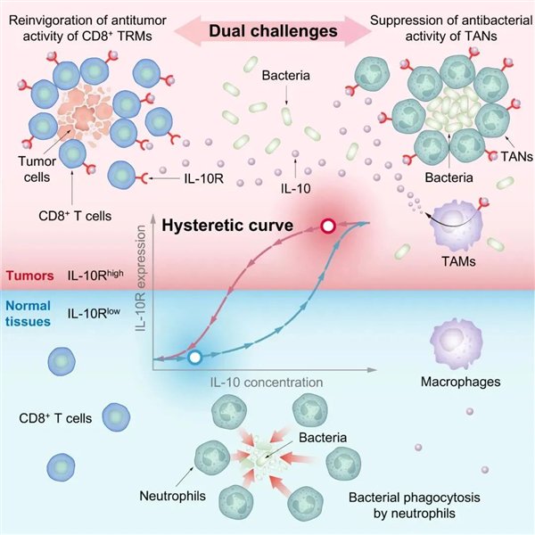 科验团队还发现,免疫细胞中存在一种“迟滞效应”机制,使肿瘤组织中的白介素-10受体水平高于正常组织。
