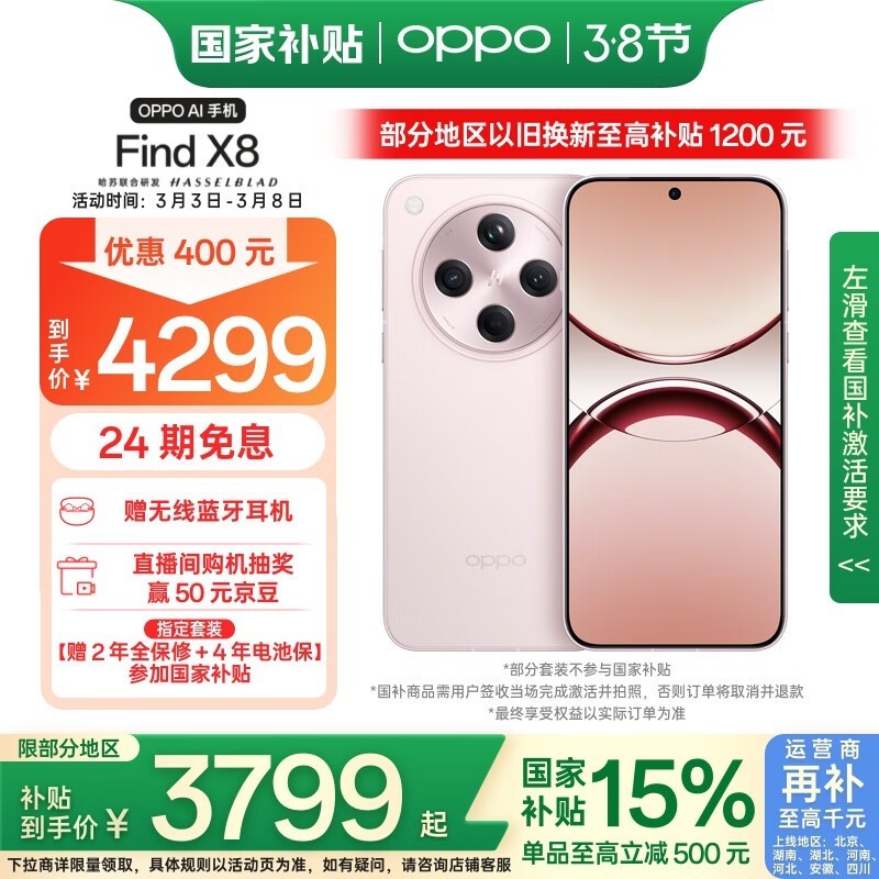 OPPO Find X8 5G手机气泡粉 12GB+512GB京东促销