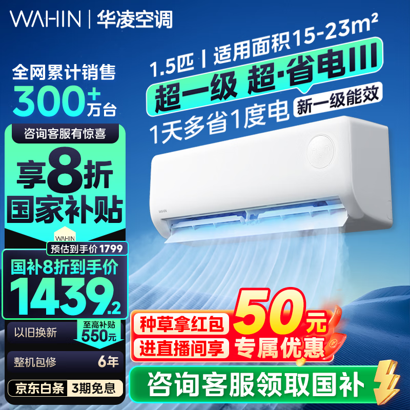 华凌1匹壁挂式空调KFR-35GW新一级能效京东秒杀到手仅1339元