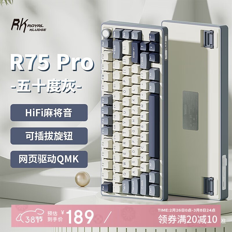 RK R75Pro游戏机械键盘三模连接客制化75配列RGB背光