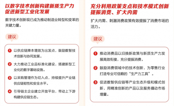 在提振消费扩大内需方面,曹鹏委员建议,鼓励消费领域中的技术创新,为零售行业打造专业可信赖的“生产力工具”,在促进数智供应链等产业生态和模式创新方面,用精准创新的产品以及服务撬动市场增量。