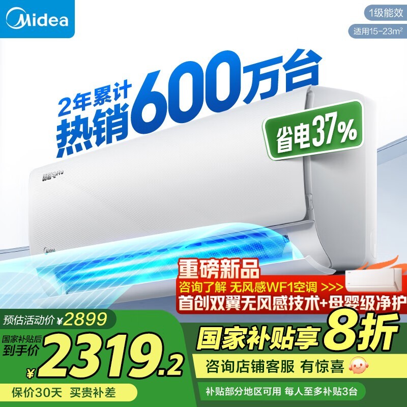 美的1匹壁挂式空调KFR-35GW酷省电Pro京东促销到手价1809元
