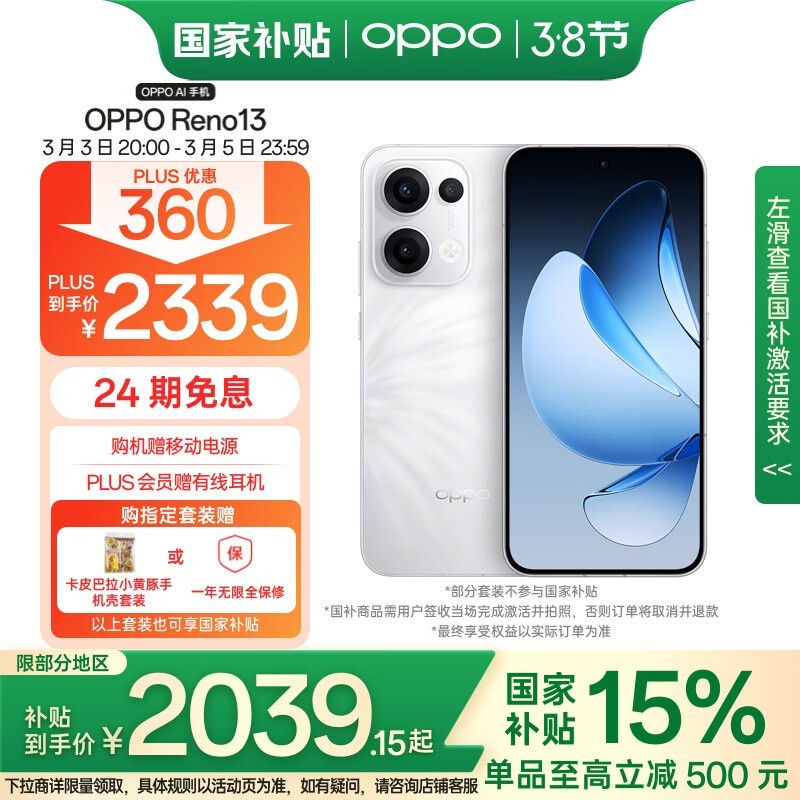 OPPO Reno13 5G手机12GB+256GB心动白配色仅1857元