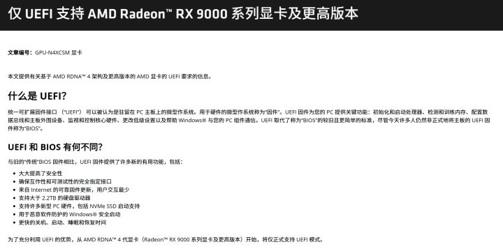 AMD确认从Radeon RX 9000系列开始,AMD显卡在启动时仅支持UEFI模式。