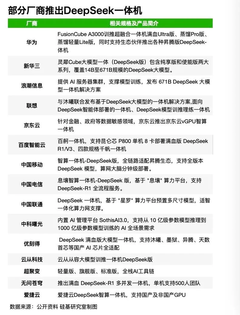 除此以外,作为中间层的AI Infra厂商也在迅速整合生态、加速算力市场洗牌,在DeepSeek牵引下,比如推出敏捷式的多并发一体机,以软硬件一体化,提供更多元、高效的推理服务解决方案。
