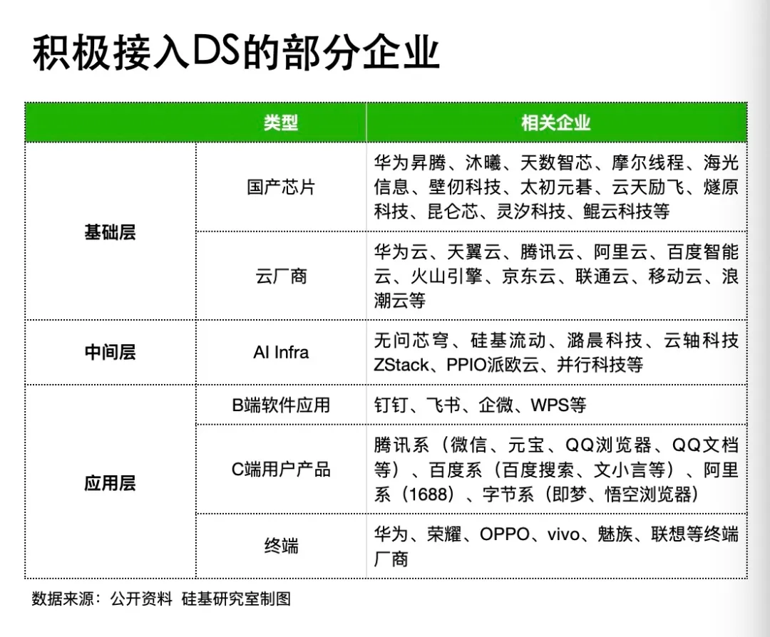 据「硅基研究室」不完全统计,第一批接入DeepSeek的企业就接近百余家。