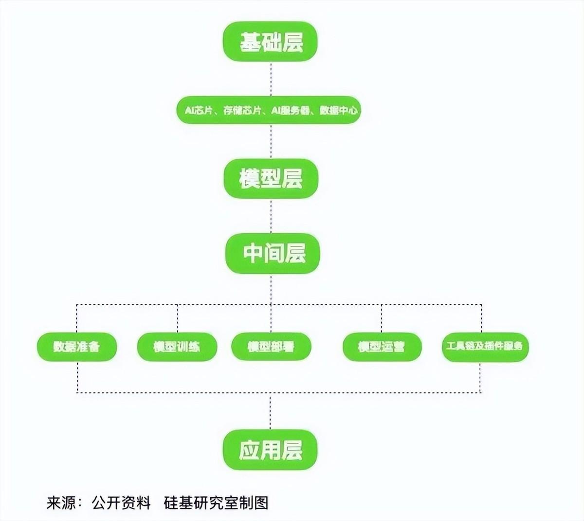 而从DeepSeek的「朋友圈」中来看,表现最为积极、速度最快的可以分为四类玩家:基础层(包括国产芯片厂商、云厂商)、中间层(AI Infra厂商)以及在B、C两端的软、硬件厂商。