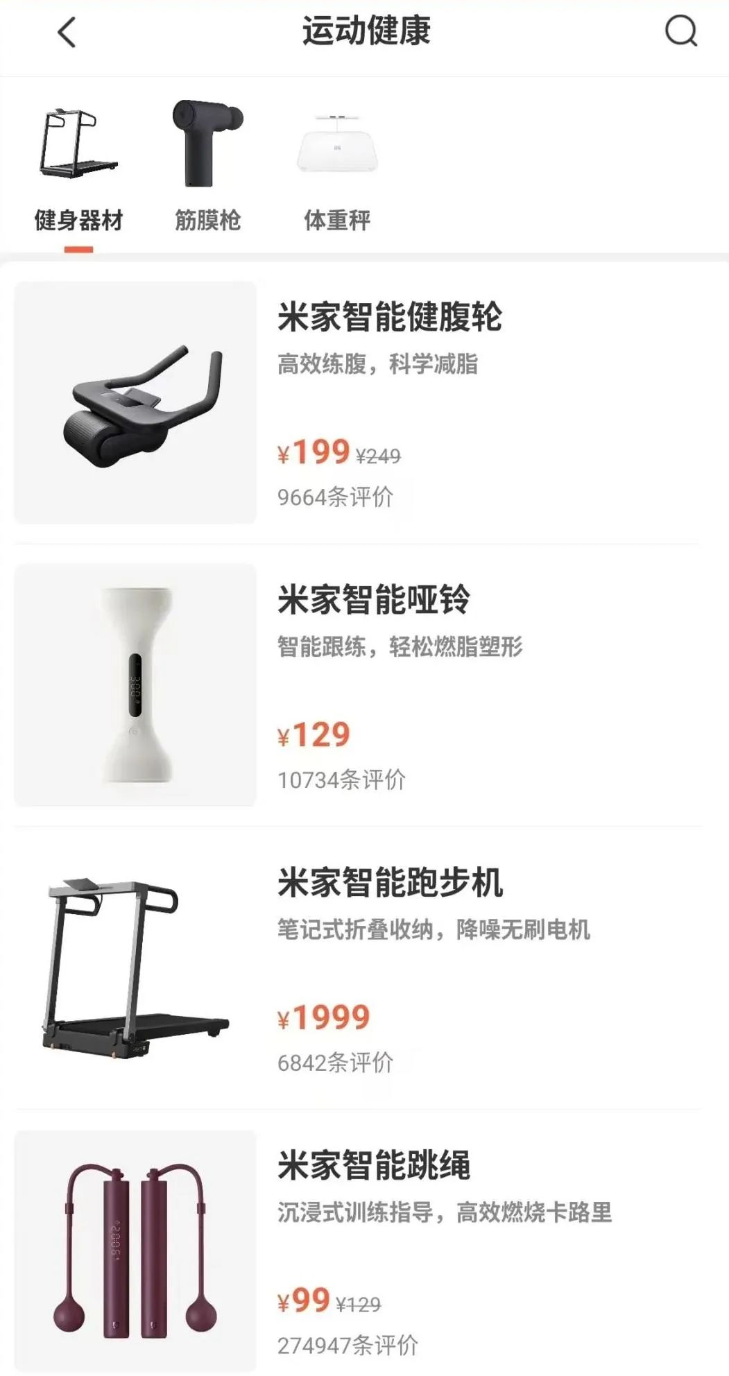 米家更是构建起丰富多元的健身产品体系:米家跑步机、动感单车等中型健身器械,米家智能跳绳、健腹轮、智能哑铃等小型健身器械,健身结束还有米家筋膜枪帮助舒缓肌肉酸痛。