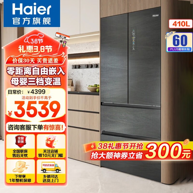 海尔410升零嵌入式法式多门冰箱仅3599元