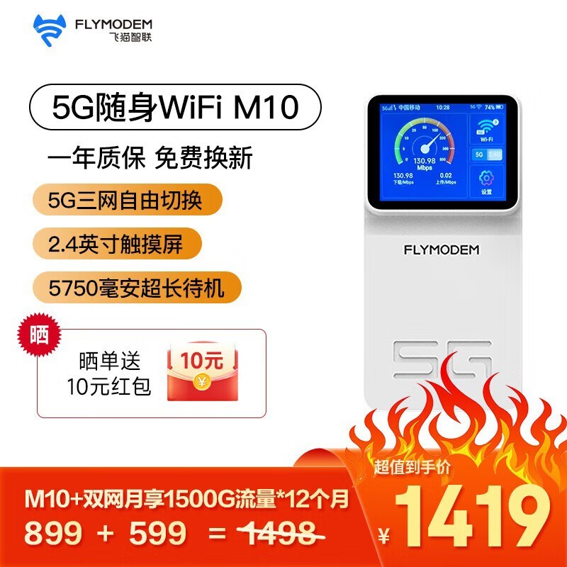 飞猫智联M10 5G随身wifi京东优惠价1319元