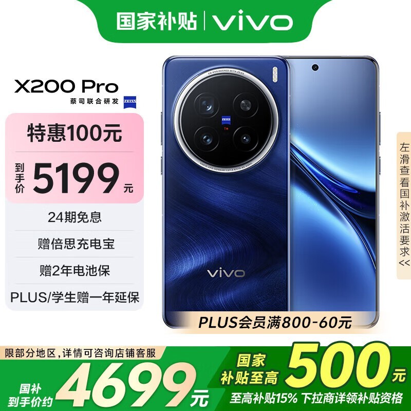 vivo X200 Pro 5G手机宝石蓝12GB+256GB京东享多重优惠