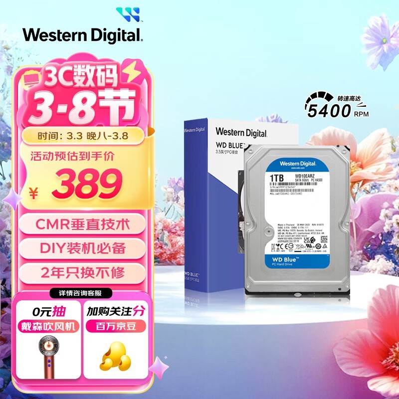 西部数据WD Blue 1TB台式机机械硬盘3.5英寸64MB缓存5400转