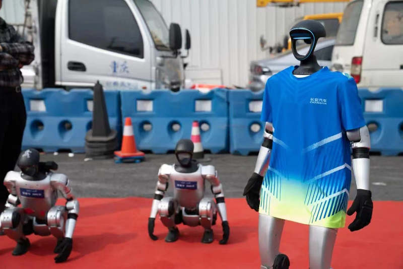 事实上,日前在长安汽车重庆AI马拉松比赛,就有12个宇树机器人G1、4个夸父机器人4代、24只宇树Go2机器狗参与跟跑和表演。