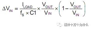 如果有输入电感,则输入端的电容容值显得重要,影响输入电压值跌落和输入电压纹波,利用充放电的电量相同可得: