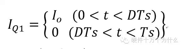 众所周知,在BuckConverter电路中Q1的电流(IQ1)波形基本如图1所示:0~DTs期间为一半梯形,DTs~Ts期间为零。当0~DT期间Iq1 ⊿I足够小时(不考虑输出电流纹波的影响),则Iq1波形为近似为一个高为Io、宽为DTs的矩形,则有: