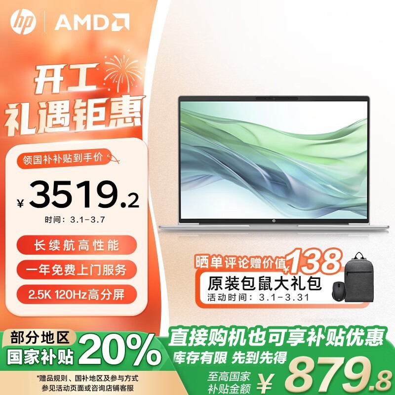 惠普战66轻薄本R7-7735U 16G 1TB 2.5K 120Hz
