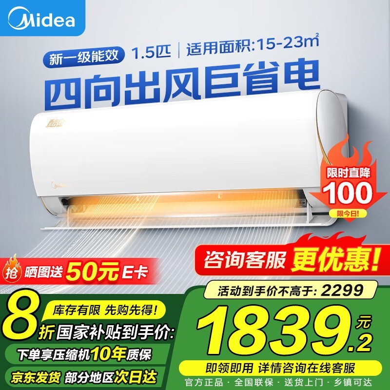 美的1.5匹酷金二代空调挂机超值优惠快来抢!