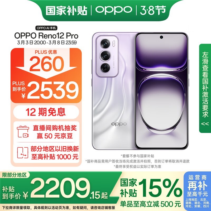 OPPO Reno12 Pro 5G手机银幻紫配色限时特惠