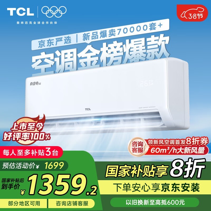 TCL真省电1匹空调 京东活动价低至1313元