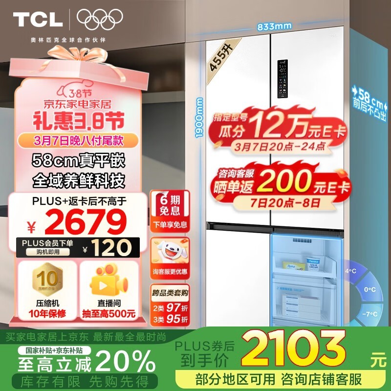 TCL超薄零嵌R455T9 - UQ冰箱455L超值优惠价