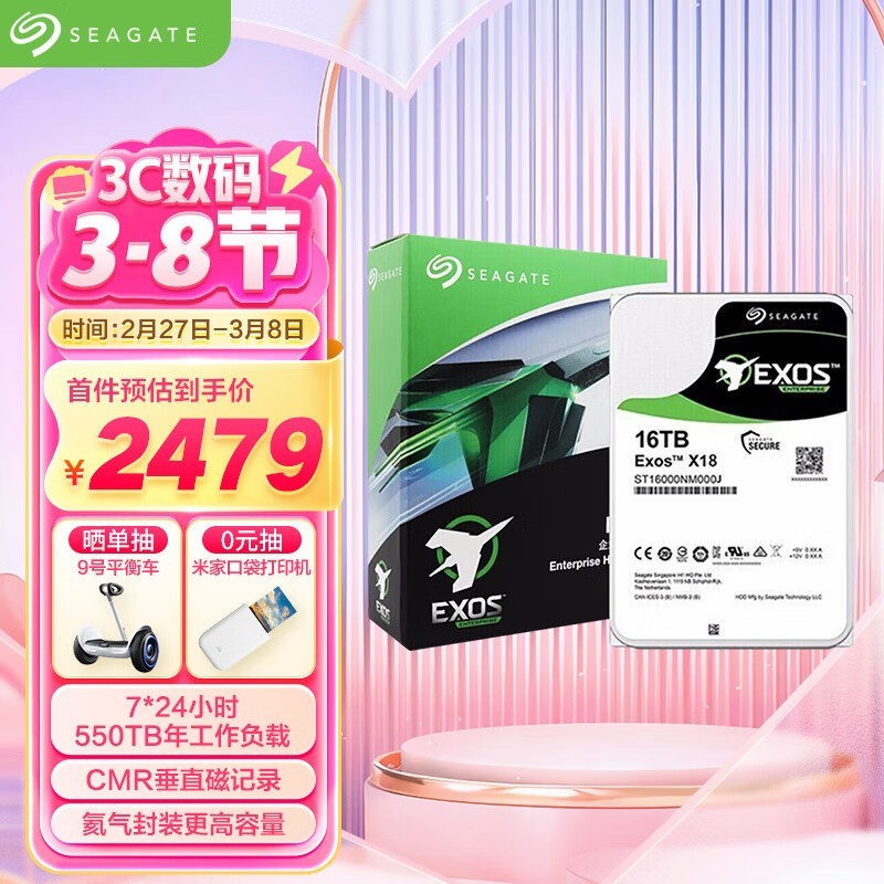 希捷Exos 16TB企业级硬盘,满减优惠到手仅2429元