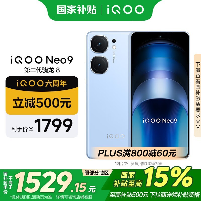iQOO Neo9 5G手机12GB+256GB航海蓝款京东特惠仅1478元