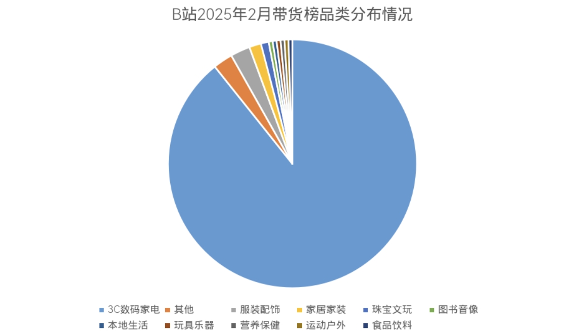 2月带货3C数码家电的UP主仍占绝大多数,占比达89.3%,包括服装配饰、家居家装等品类占比均未超过3%。值得注意的是,本月新增“本地生活”带货品类。该品类仅有一位UP主登榜,B站昵称“费德勒21考研已上岸”,带货商品以考研题库和课程为主。