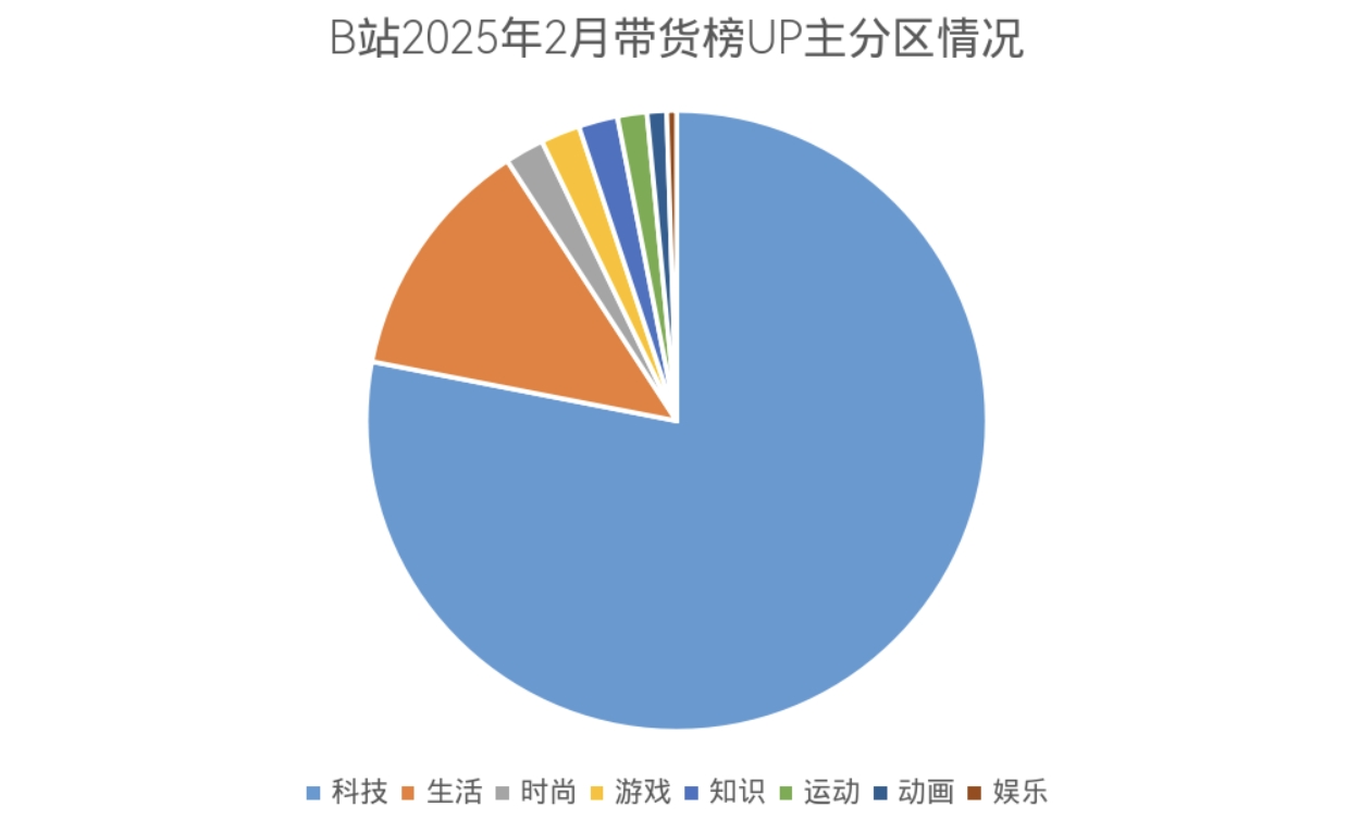 【亿邦原创】日前,B站发布2月UP主带货排行榜。据悉,共有196位UP主登榜,其中26位单月GMV超千万,170位GMV超百万。登榜的UP主中,科技区占比78.1%,生活区占比12.8%,时尚区、游戏区、知识区均占比2%,运动区占比1.5%,动画区占比1%,娱乐区占比0.5%。