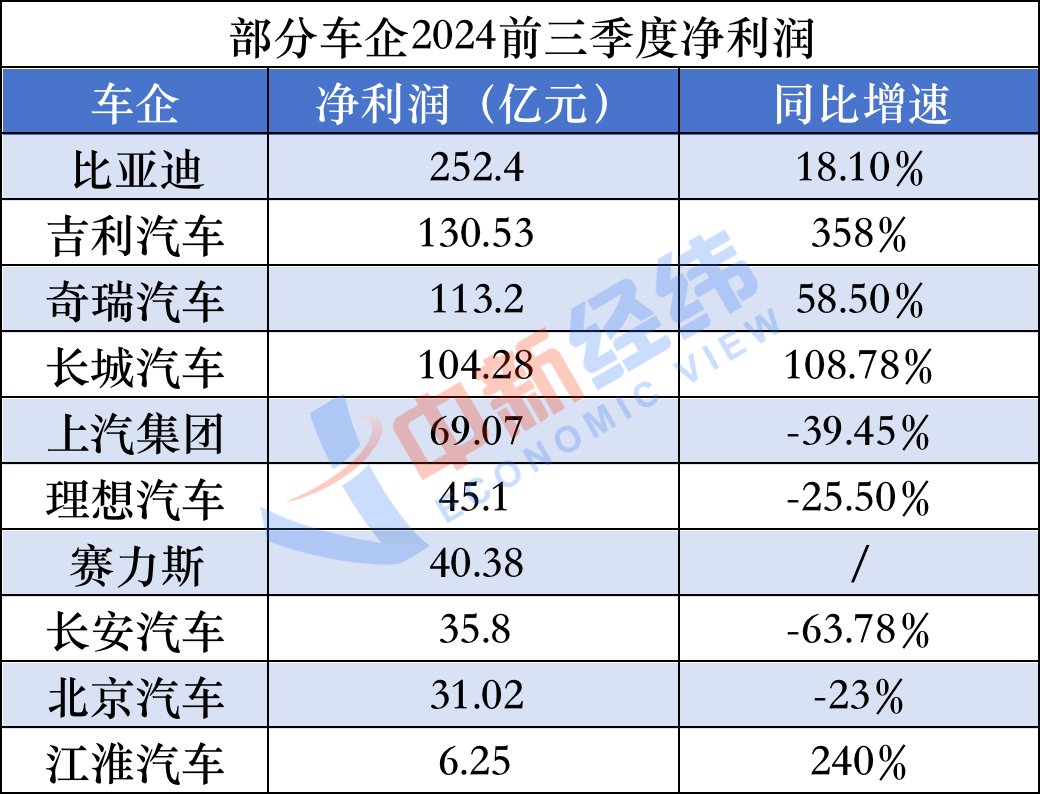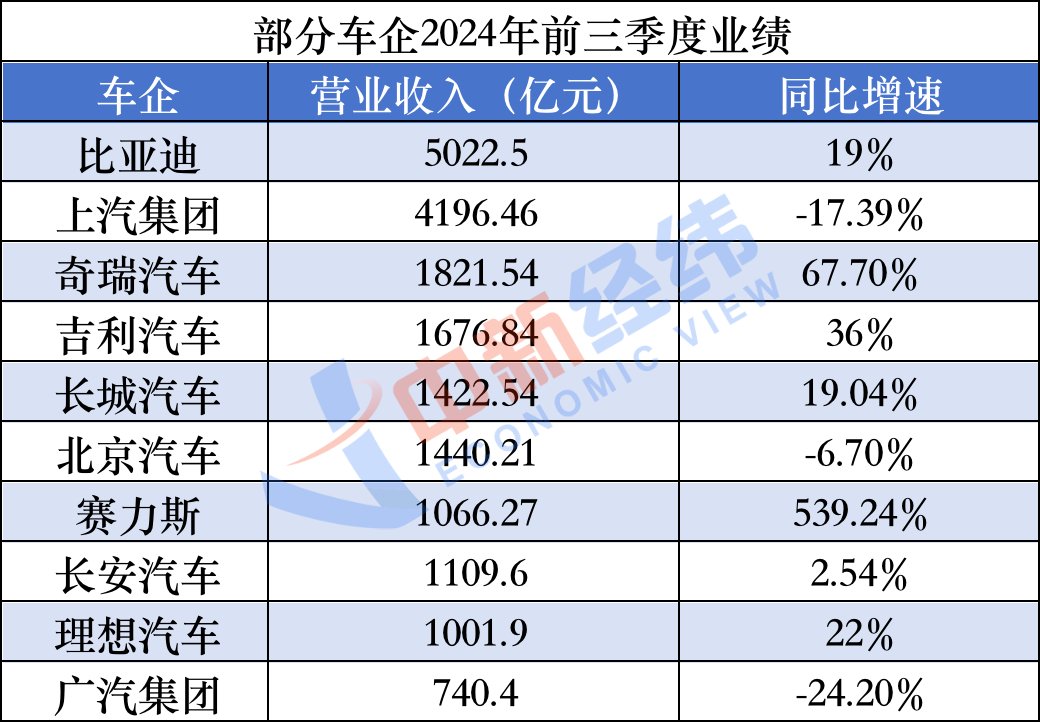 2024年前三季度营收、净利润居中国车企第三